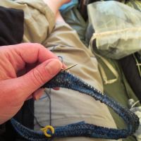 Aangezien ik mijn Moebius-sjal niet mee kon nemen in het vliegtuig (metalen naalden, goed merk, zonde om bij douane in te moeten leveren) en ik thuis toch iets wilde breien, begon ik met de andere streng Rowan aan een andere sjaal.