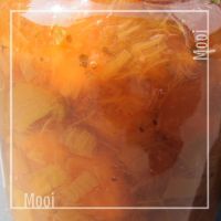 In het tijdschrift van onze buurtsuper staan regelmatig recepten die er lekker genoeg uit zien om uit te proberen en dit was er ook één van met rababer in de hoofdrol.
