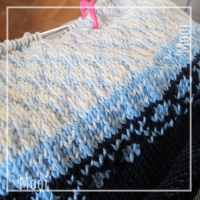 Met de rondbreinaalden en katoen Muskat van Drops een Noorse trui breien voor schoonmama.